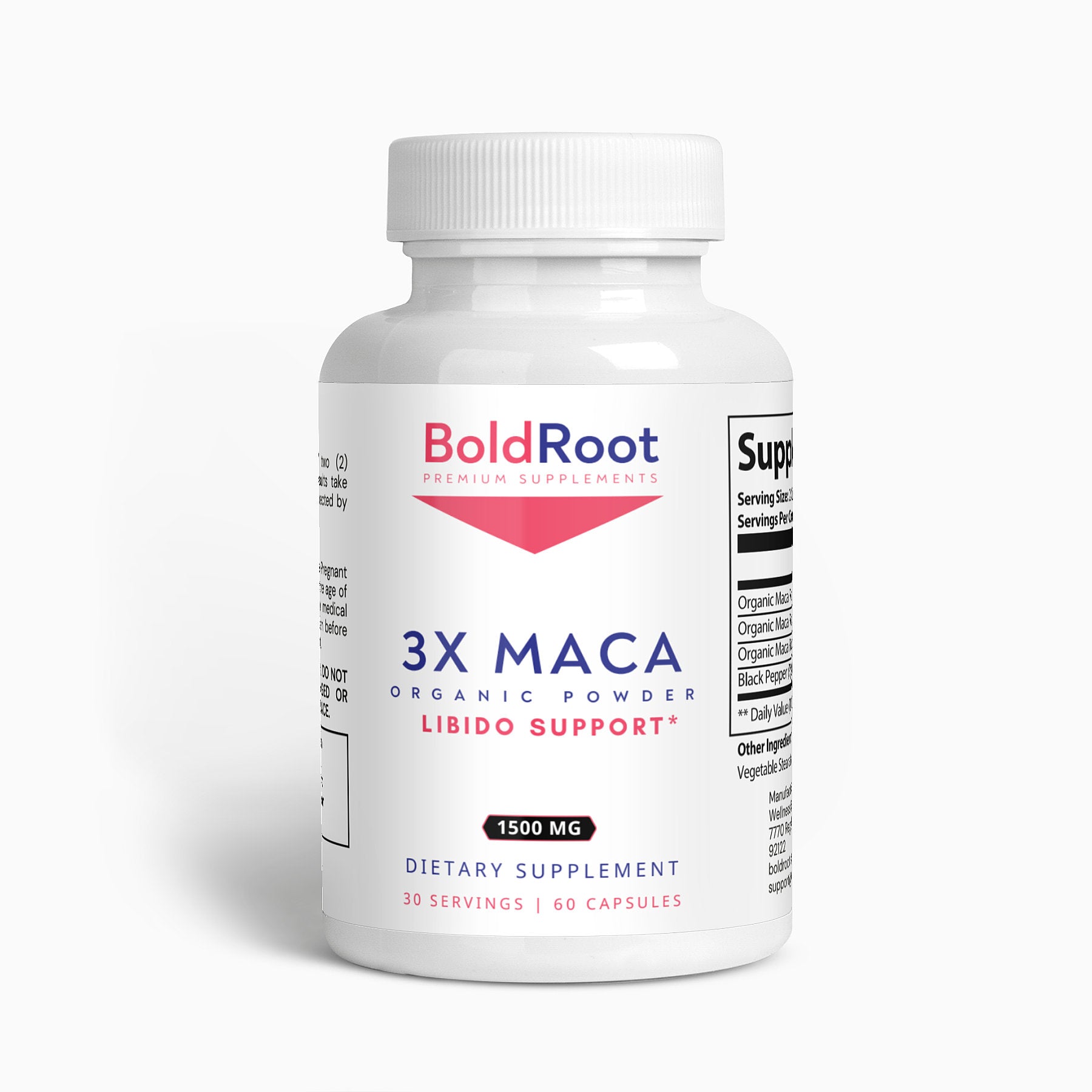 Unlock your peak performance with 3X Maca, the ultimate supplement for enhancing male libido.* Blended with potent red, black, and yellow maca varieties, this formula is designed to supercharge your sexual health, boost your energy, and support your fertility. With an unparalleled 1500mg of maca root per serving, 3X Maca is your go-to for hormonal balance and powerful antioxidants. Take control of your sexual vitality and experience the transformative effects of 3X Maca – because when it comes to your performance, only the best will do.