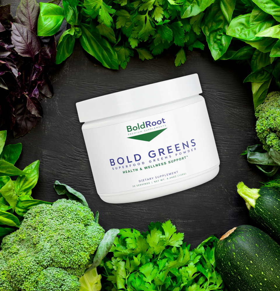 Fuel your wellness journey with Bold Greens, the ultimate greens powder for overall health and vitality.* Packed with essential vitamins and minerals from diverse plant sources, Bold Greens features a potent blend including Barley Grass, Spirulina, Green Tea, Beet Root, Acai, Turmeric Extracts, and many more. This daily supplement offers a convenient way to boost your nutritional intake with concentrated plant-based nutrients, all without artificial additives.* Designed for those who value their health, Bold Greens supports your body's needs, keeping you vibrant and energized every day.